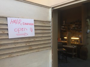 I close my eyes and let the man buzz away. My heart is a bongo drum in my chest. The man is close and utterly gorgeous. I feel naughty yet relaxed in a way I haven’t been for weeks. Lulled by his closeness my mind wanders as a radio presenter drones in the background of our makeshift salon.
